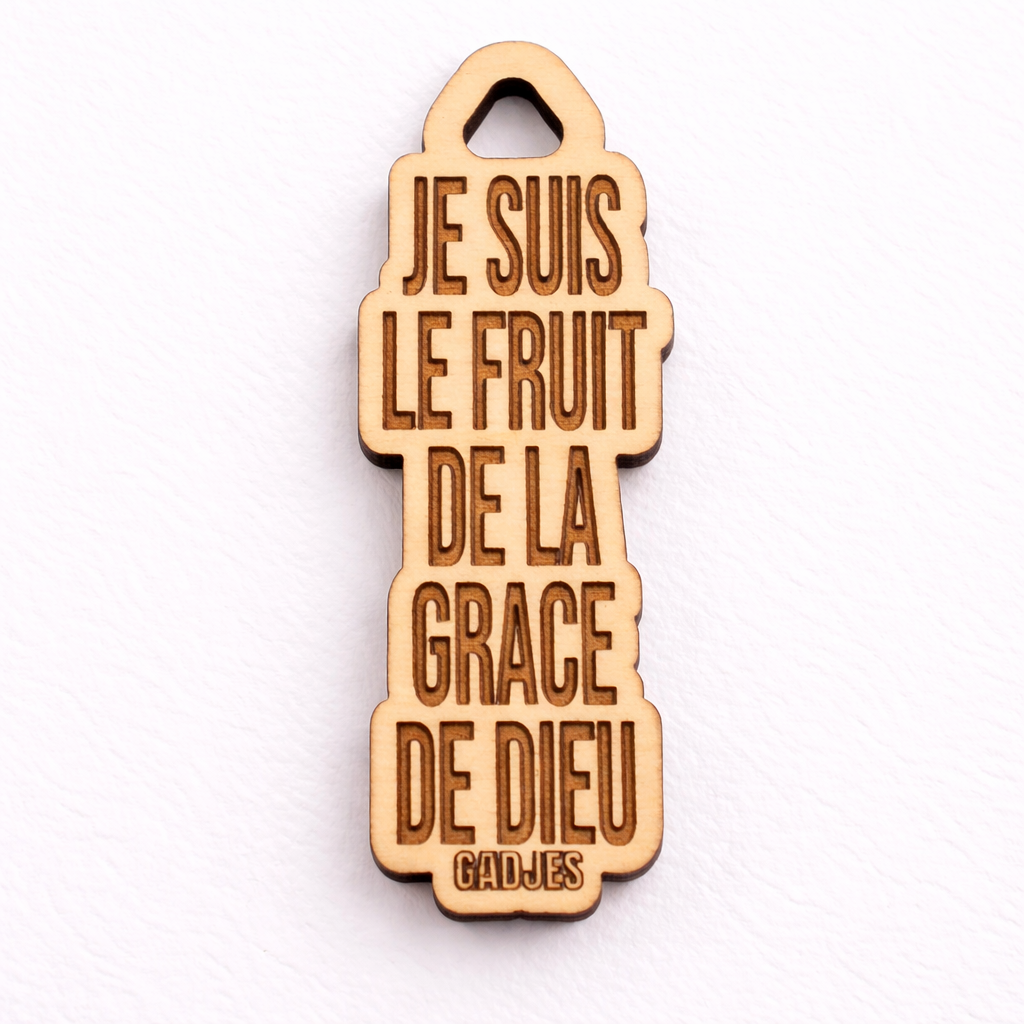 Message gravé et découpé sur du bois, à accrocher partout, inspiré d’Éphésiens 2:8.