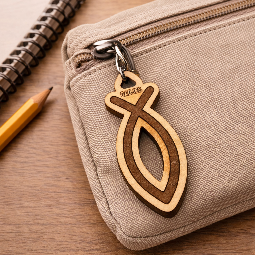 Vous pouvez l’accrocher à votre trousseau de clés, où il tintinnabulera doucement, ou le fixer à la boucle de votre sac à dos, témoin silencieux de vos trajets. Il se fait discret sur un sac à main, une simple touche de sens au milieu de l’ordinaire. C’est étendard qui clame, un rappel personnel, un ancrage. Tout au long de la journée, il murmure à votre mémoire l’essentiel, ce message central de l’Évangile, simplement, en accompagnant le mouvement de votre vie.
