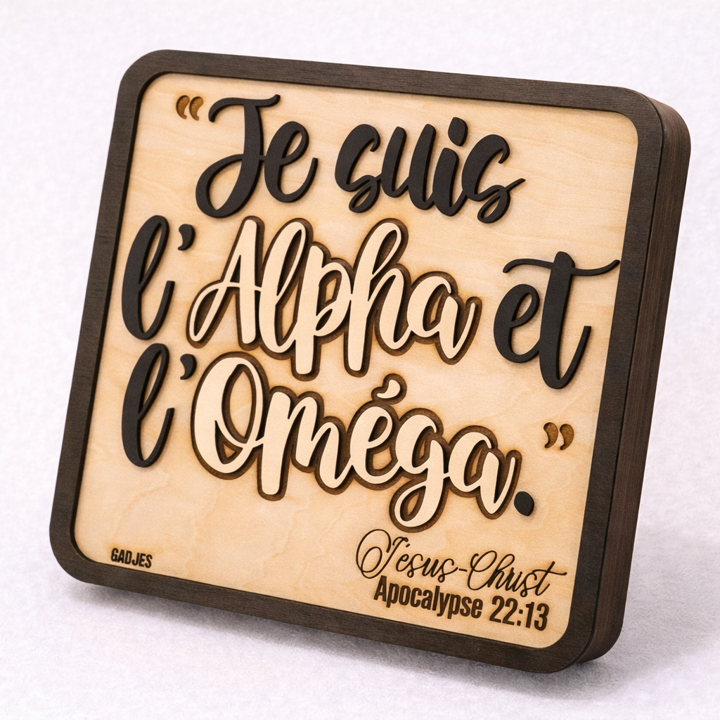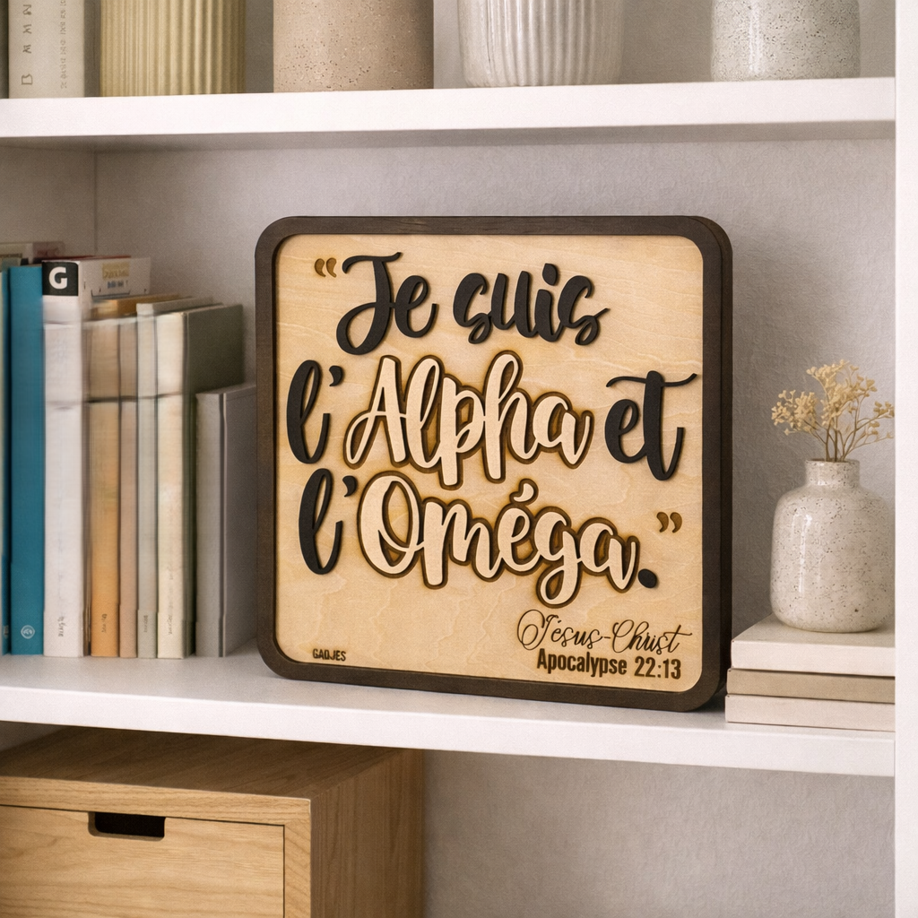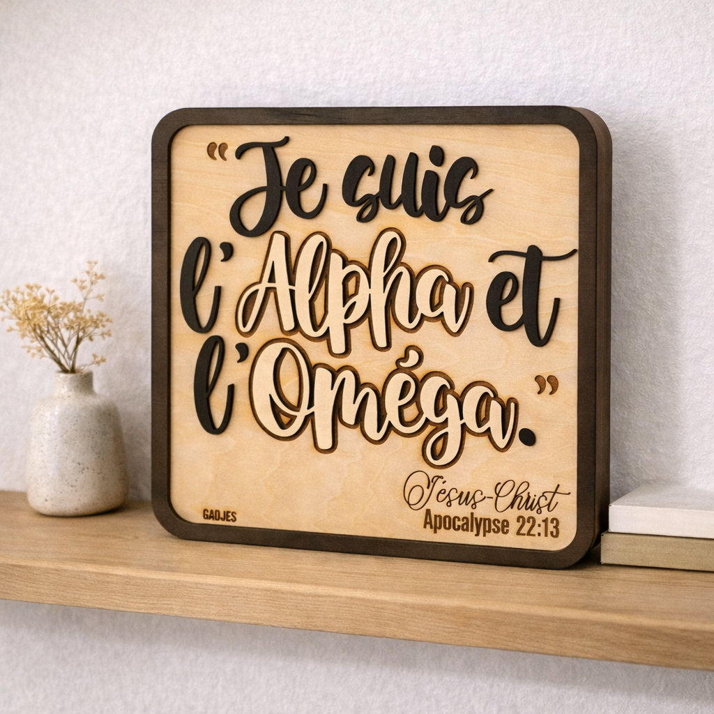 Imaginez accrocher dans votre salon un rappel discret mais profond de ce qui donne un sens à tout. C’est exactement ce que propose ce tableau en bois gravé, qui porte une des déclarations les plus fondamentales de la foi chrétienne : « Je suis l’Alpha et l’Oméga ».