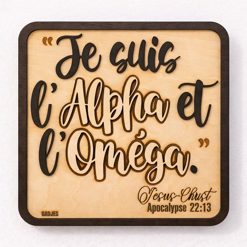 Décoration artisanale en bois – « Je suis l’Alpha et l’Oméga » (Apocalypse 22:13)