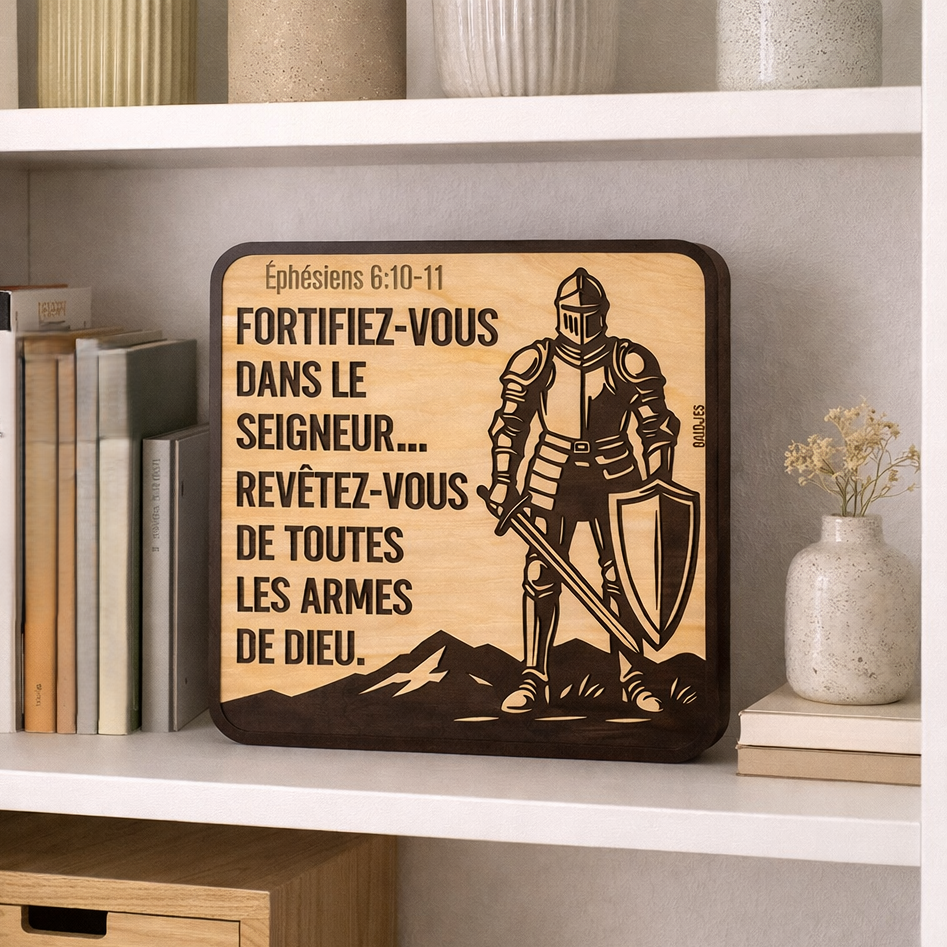 Décoration artisanale en bois – « Fortifiez-vous dans le Seigneur » (Éphésiens 6:10-11)