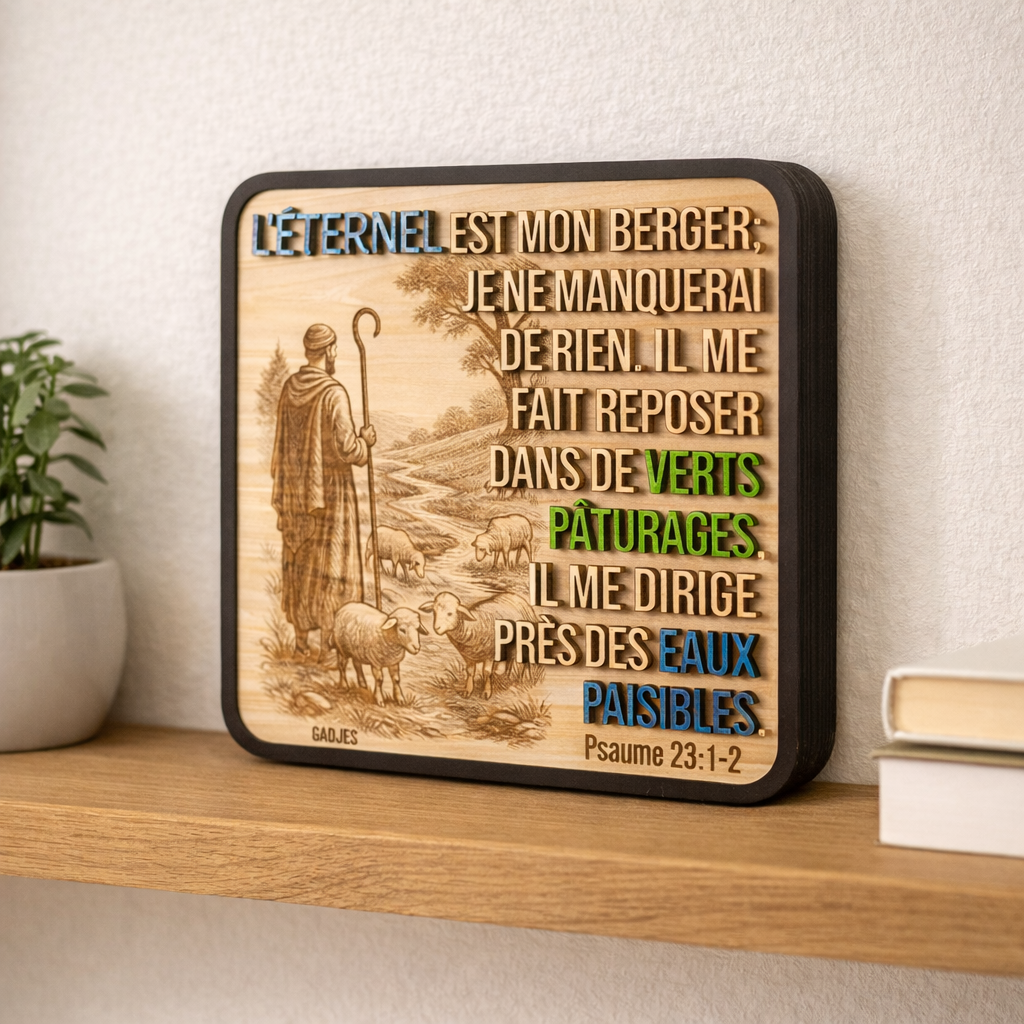 Décoration artisanale en bois – « L’Éternel est mon berger » (Psaume 23:1-2)